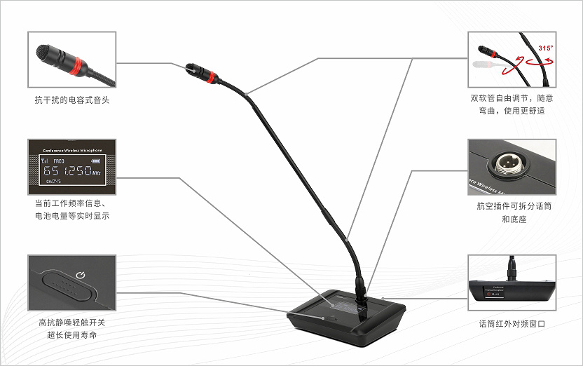 频率响应: 40 ~ 18 KHz发射参数(会议话筒)